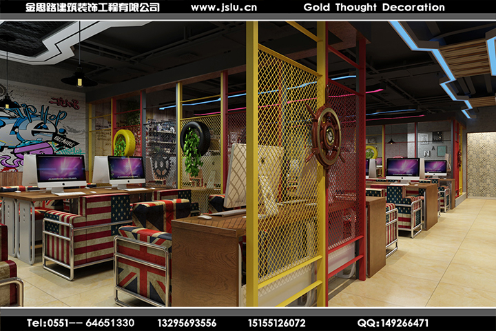 金思路裝飾,設(shè)計施工國家二級資質(zhì),安全生產(chǎn)許可證持有單位,專注工裝設(shè)計20年,專業(yè)值得信賴!金思路裝飾打造全新網(wǎng)咖模式,全新設(shè)計理念,以網(wǎng)咖運營為設(shè)計核心,一站式為您服務,給用戶帶來好的體驗。我們做好每一個網(wǎng)吧設(shè)計服務環(huán)節(jié),力求精致,發(fā)揮團隊精神提供優(yōu)質(zhì)的網(wǎng)吧裝修設(shè)計服務,打造令您滿意的作品!